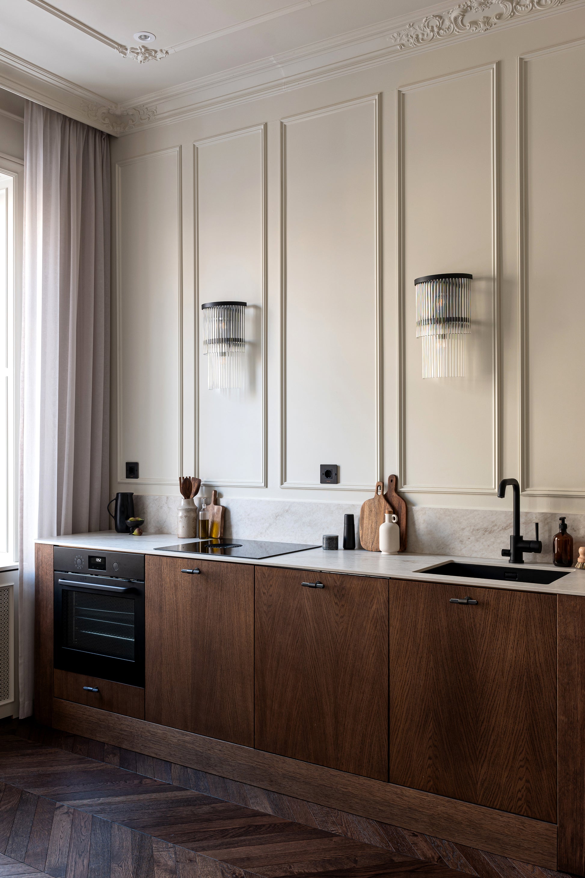 Our medium-sized plain cornice moulding creates a smooth transition between the wall and the ceiling and blends seamlessly into a variety of settings. With its clean lines and finely balanced proportions