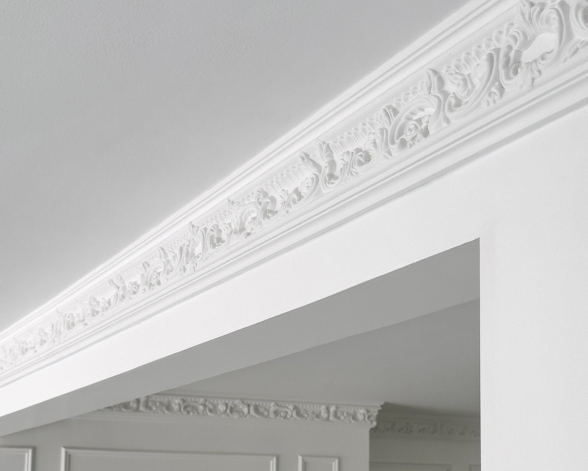 Questa modanatura per soffitti decorata è tipica delle abitazioni di fine secolo. In molte abitazioni storiche, purtroppo, le modanature originali sono scomparse nel tempo, ma con la nostra modanatura per soffitti puoi facilmente ricreare il carattere storico autentico della stanza.