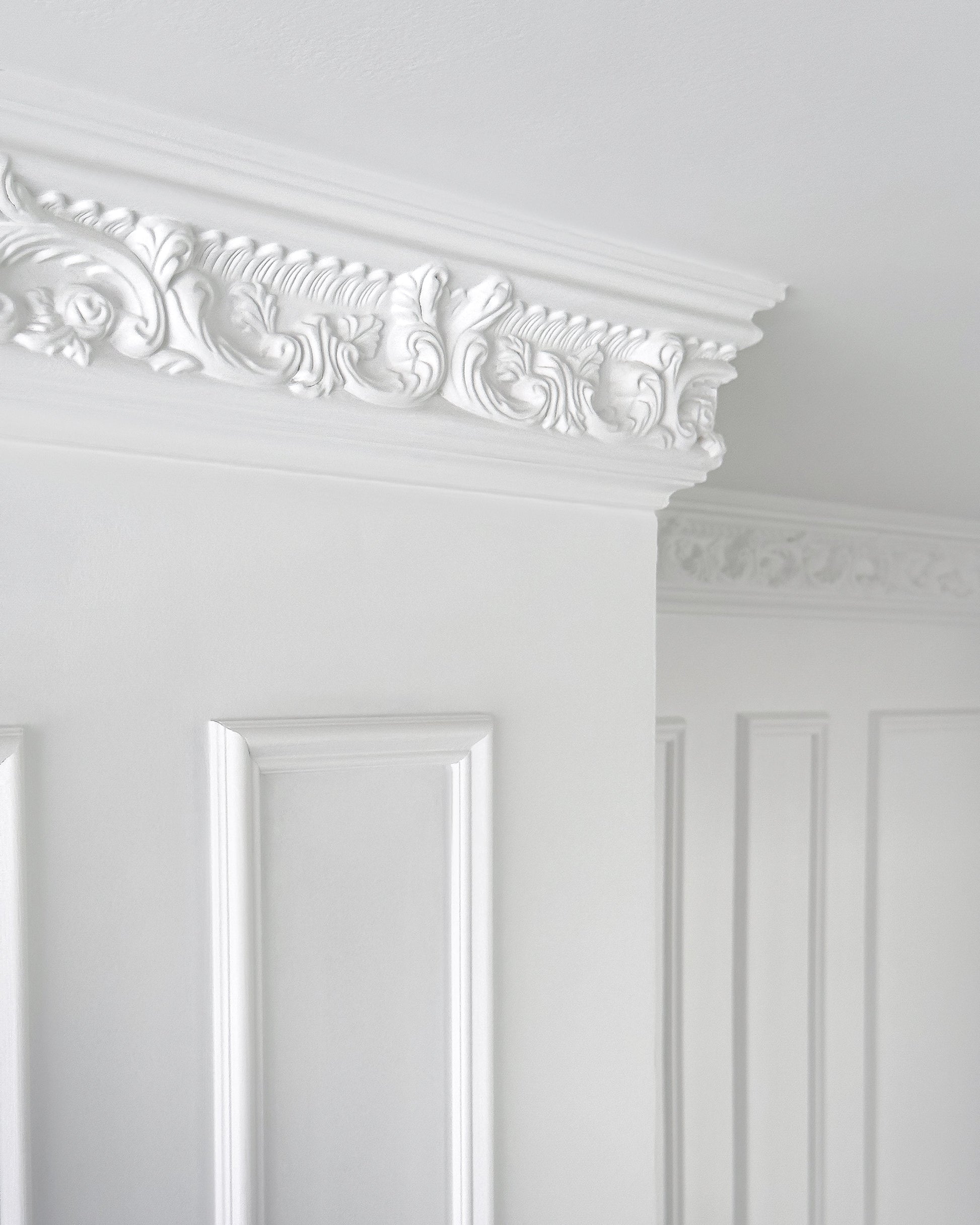 Questa splendida cornice decorativa aggiunge carattere alla stanza. Perfetta per chi sta ristrutturando e desidera ripristinare l'eleganza d'epoca con splendidi stucchi e dettagli ornamentali tipici degli inizi del '900.