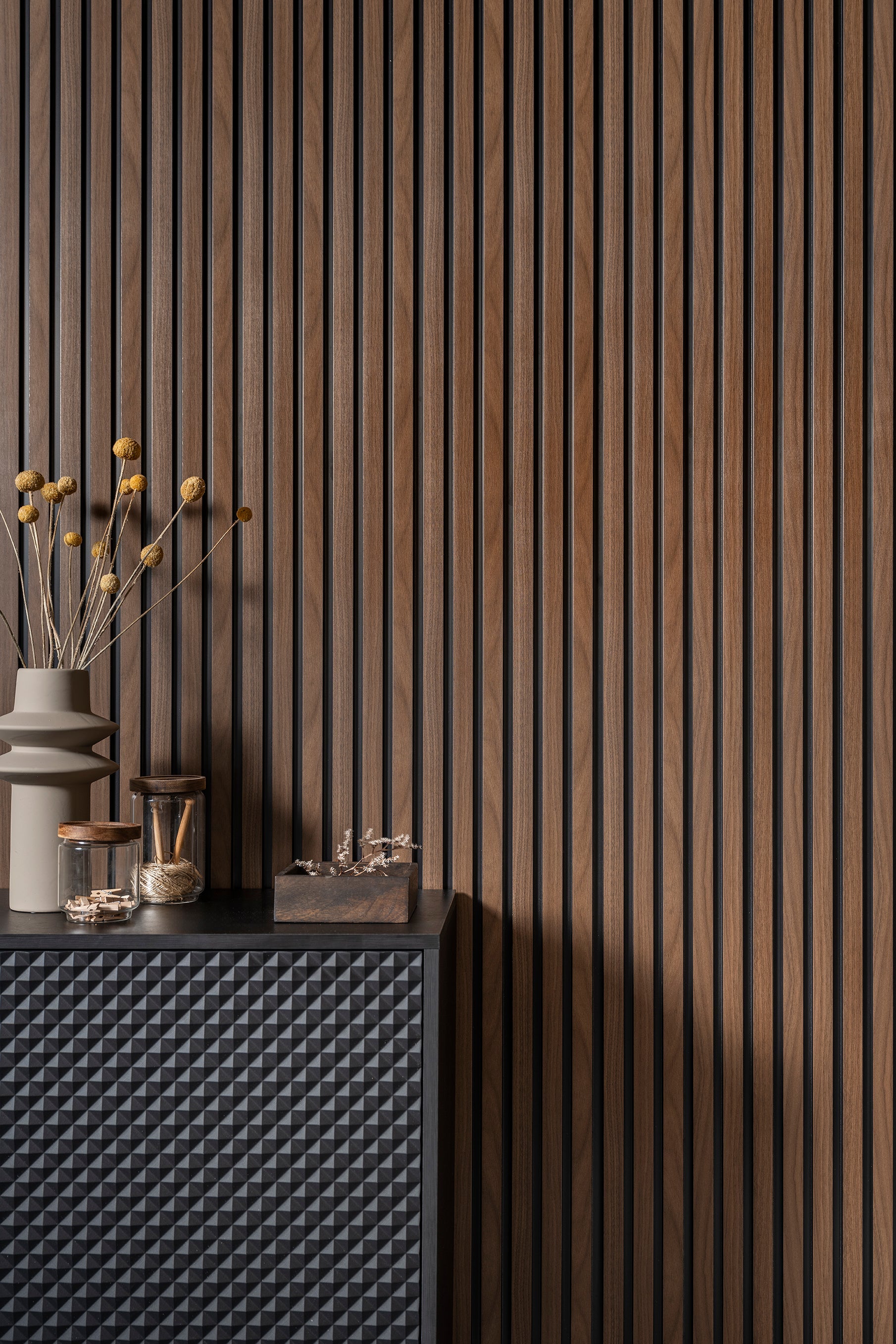 Questo listone da parete ha un profondo motivo che aggiunge una potente effetto 3D alla stanza. La splendida tonalità del legno si adatta altrettanto bene sia agli ambienti classici che a quelli industriali. Il pannello può essere facilmente tagliato e montato su pareti, isole cucina, nei bagni o sui mobili.